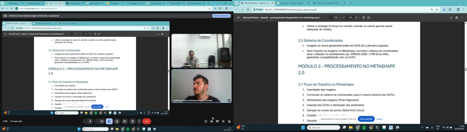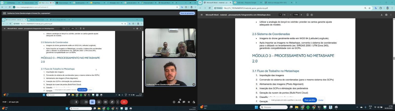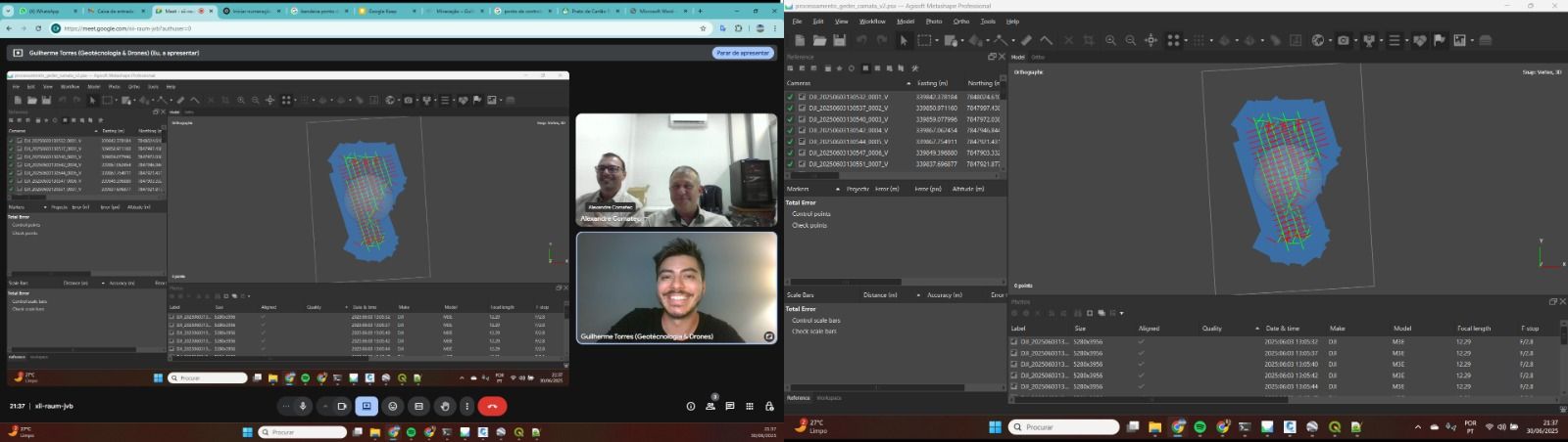 - Processamento Fotogramétrico com Agisoft Metashape: desde a organização das imagens até à produção de ortomosaicos, modelos 3D e nuvens de pontos de elevada precisão.